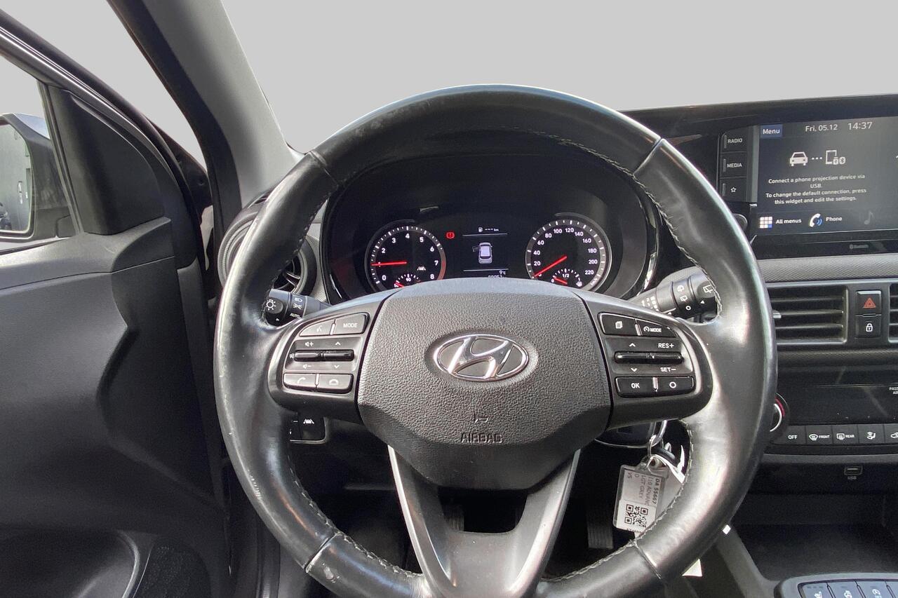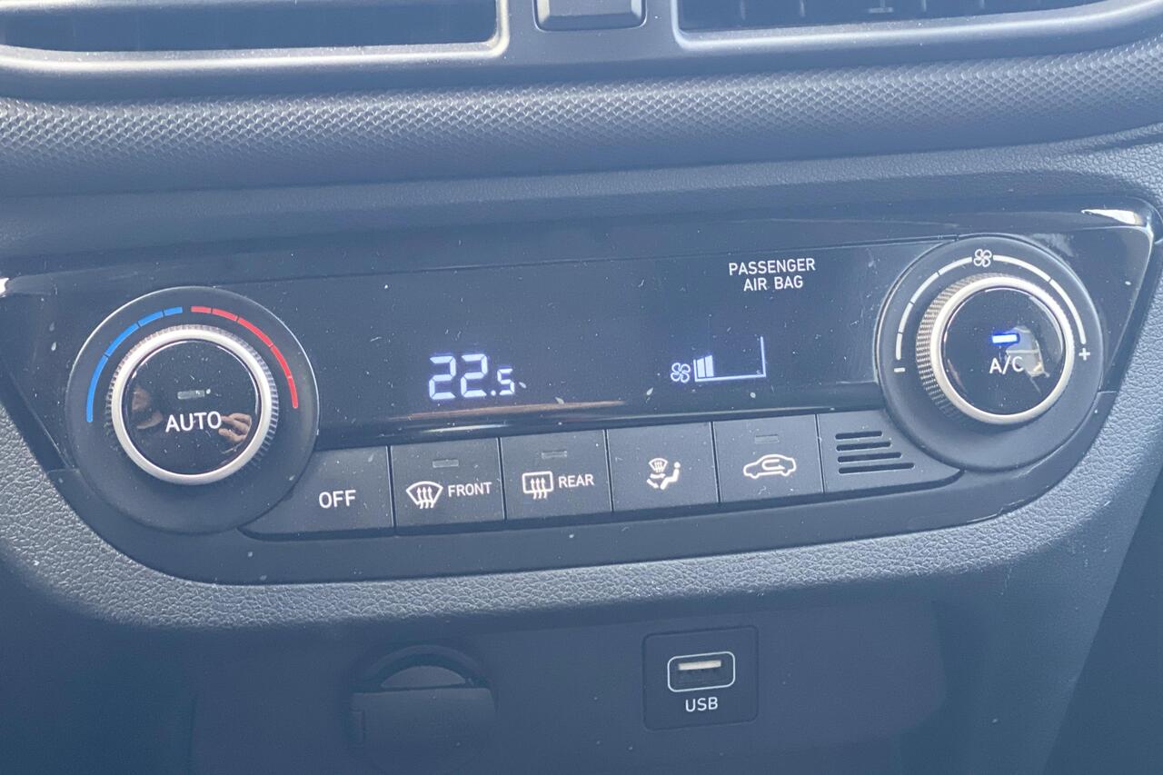 Deze i10 is rijkelijk uitgerust met comfort- en technologische snufjes die elke rit aangenamer maken. Geniet van de luxe van automatische klimaatregeling, terwijl het inparkeren een fluitje van een cent wordt dankzij de handige parkeersensoren voor en achter, inclusief achteruitrijcamera. Blijf altijd verbonden en vind moeiteloos uw weg met het intuïtieve aanraakscherm, voorzien van Apple CarPlay, Android Auto en een geïntegreerd navigatiesysteem. Voor de koudere dagen zorgen het verwarmde stuurwiel en de zetelverwarming voor ongekend comfort. Bovendien maakt cruise control langere ritten ontspannen en zuinig.